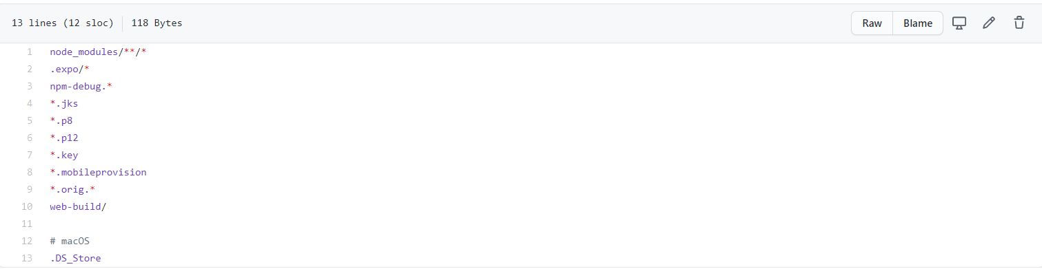 git ignore 파일 react native용 git ignore 파일엔 node_module 파일을 업로드하지 않는다고 되어있어