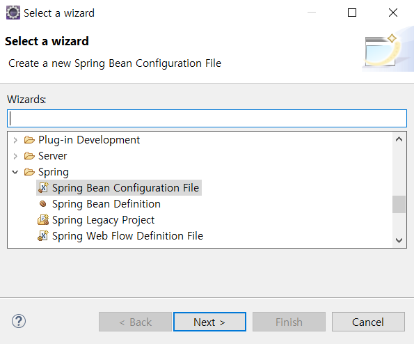 spring.di 패키지에 New > Other > Spring Bean Configuration File 을 선택하여