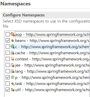 <util:list id="exams" list-class="java.util.ArrayList"> <bean class="spring.di.entity.NewlecExam" p:kor="1" p:eng="1" p:math="1" p:com="1"/> <ref bean ="exam"></ref> </util:list>이때, util:list는 list와 다르다.