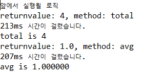 실행 결과 Before Advice는 total 함수에서만 실행된 것을 확인할 수 있다.
