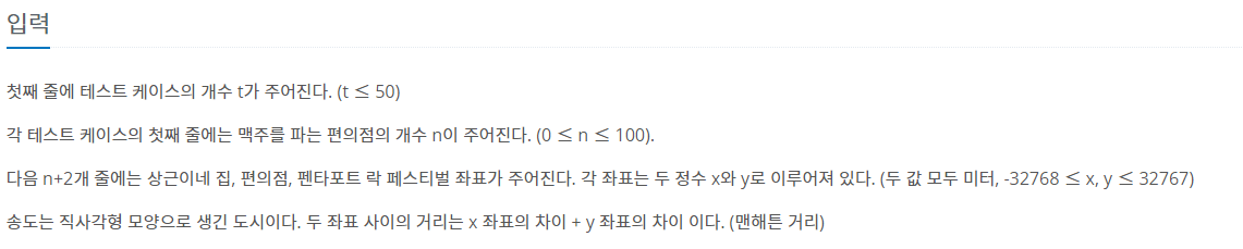 9205번: 맥주 마시면서 걸어가기