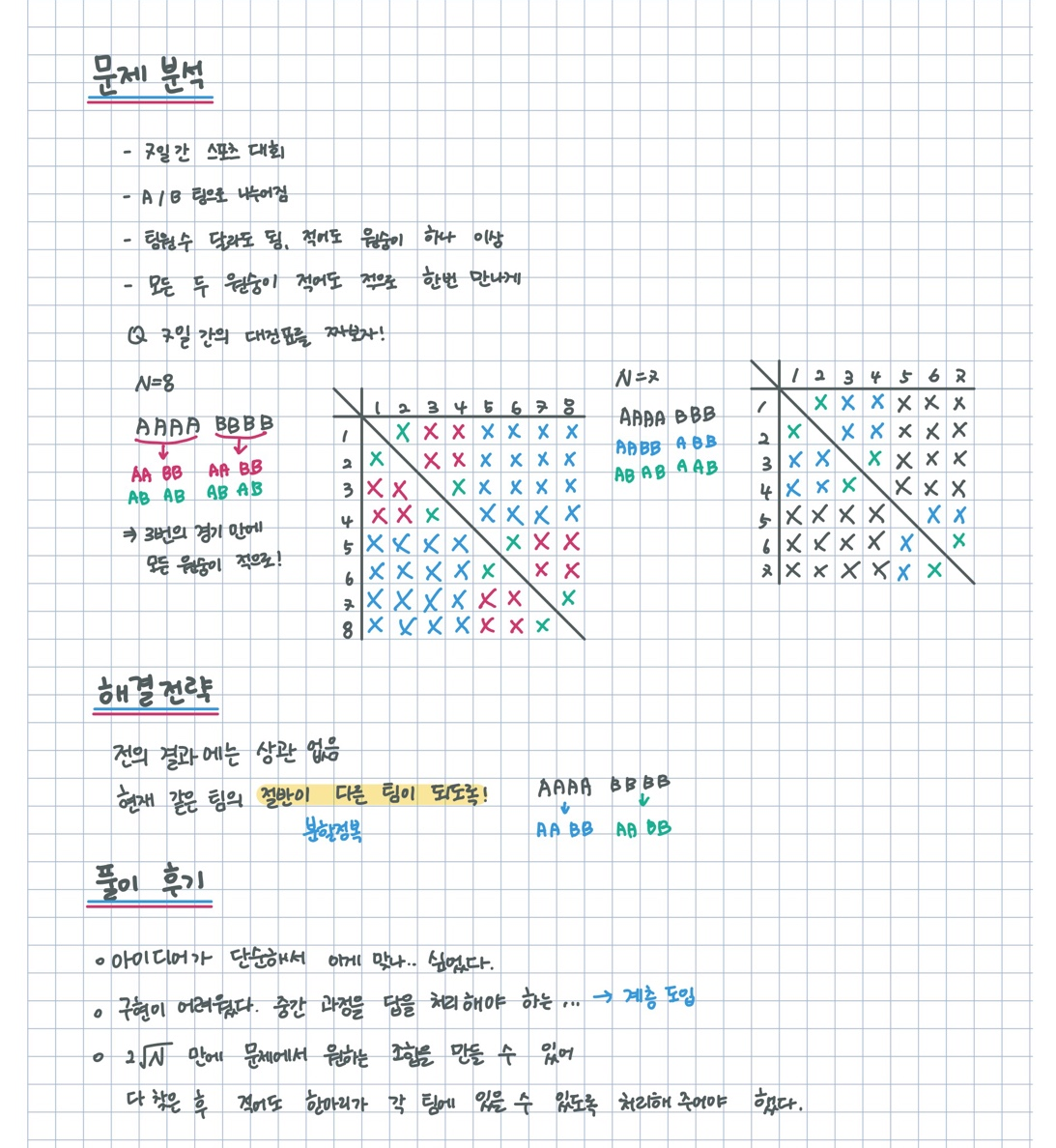 승민이는 동물원의 원숭이들을 관리하는 사육사입니다. 이 동물원에는 N마리의 원숭이들이 있고 원숭이들에게 1번부터 N번까지 번호를 붙였습니다. 7일간 동물원에서 원숭이들끼리 스포츠 경기