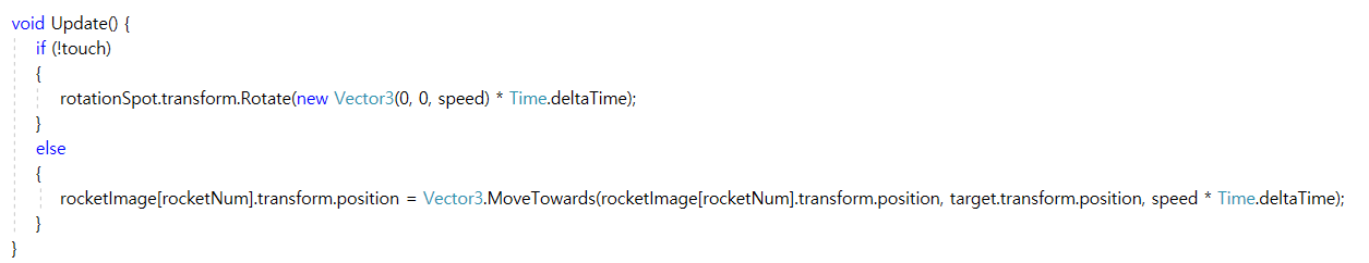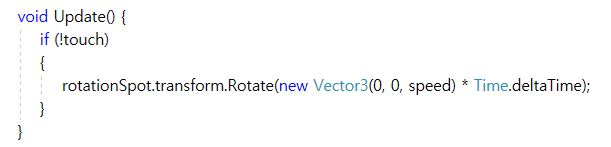 단순히 화면을 터치하면 bool 타입의 touch 변수가 true로 바뀌고 Update함수에서 동작하던 코드가 멈추게 된다.