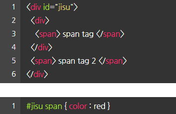 span tag 와 span tag 2 모두 red색상이 적용될 것입니다.