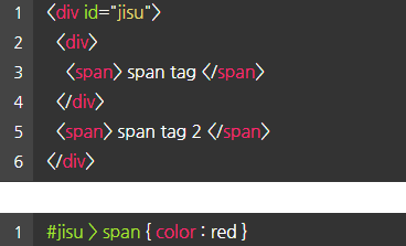 *span tag 같은 경우엔 div > span 이므로 적용되지 않습니다.