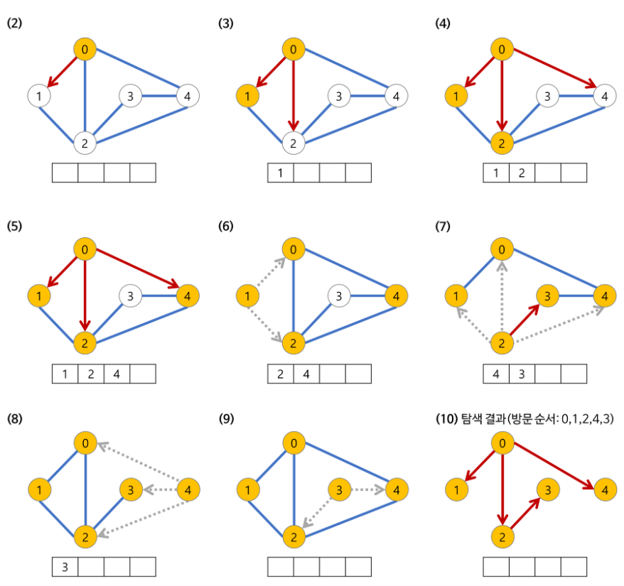 그래프를 탐색한다는 것은 하나의 정점으로부터 시작해 차례대로 모든 정점들을 한 번씩 방문하는 것이다.
