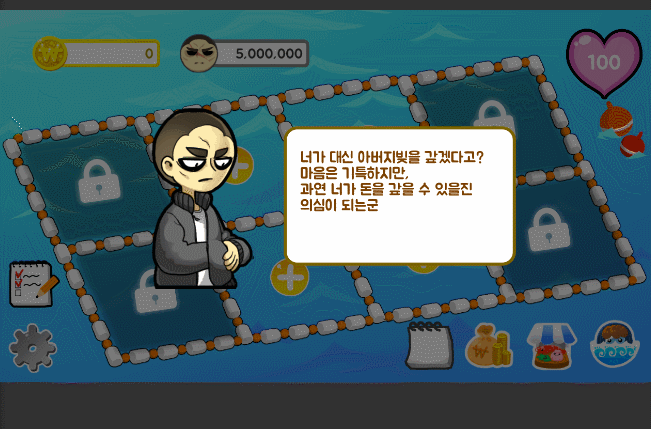 기존 구매,장비탭이 나오는 것에서 상점 아저씨가 반겨주는 상점으로 수정하여 조금 더 게임이 풍부하도록 만들었다.