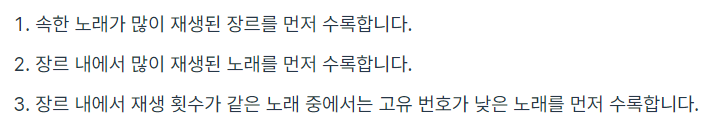 *장르당 2개까지 노래를 담을 수 있기 때문에 int 배열의 크기는 3