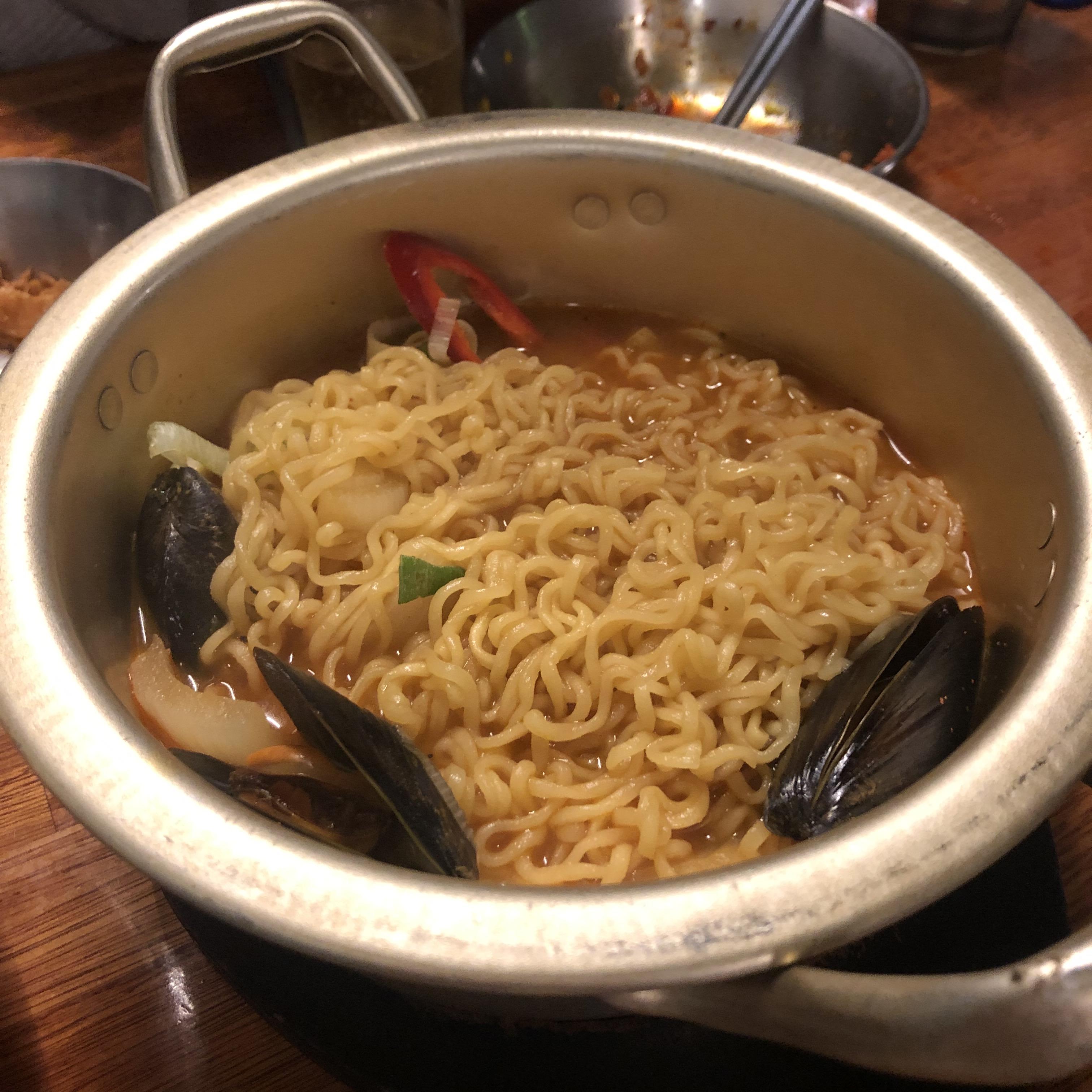 라면은 2인분이래요~ 홍합과 떡도 들어있고 알찬 느낌의 안주거리입니다 ㅎㅎ