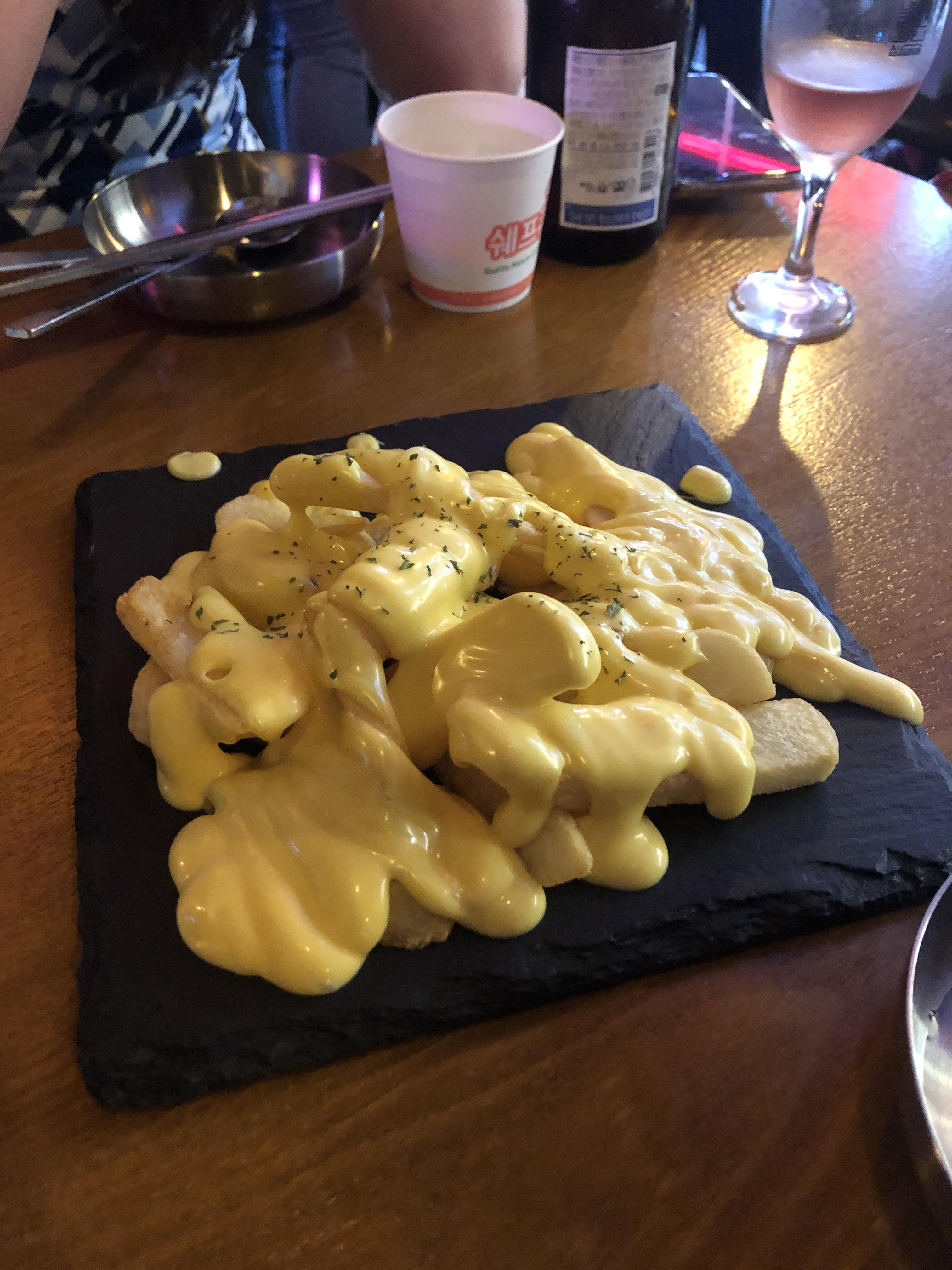 이곳에선 간단하게 갈릭 포테이토와 황도를 시켰어요