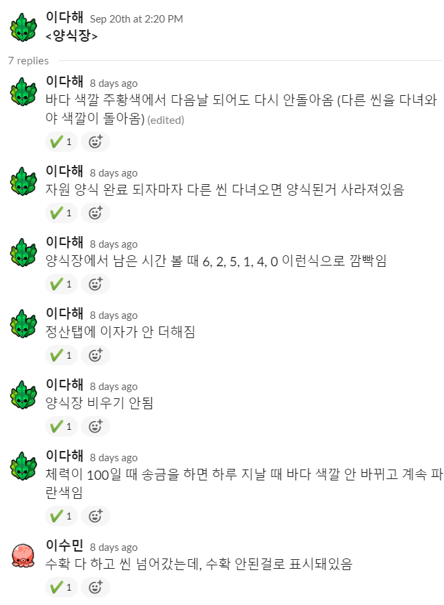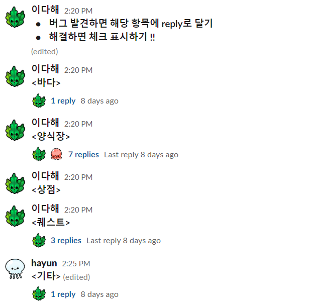 주변 지인들에게 게임 플레이를 부탁드리며 찾지 못했던 버그들을 발견하였다.